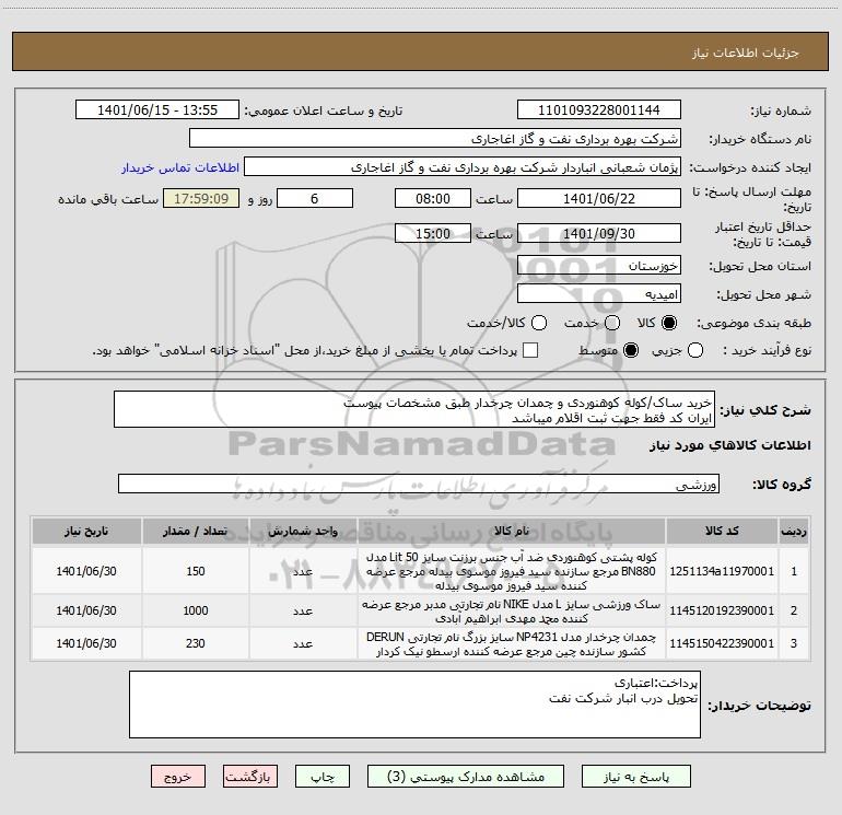 شرح کلی نیاز: خرید ساک/کوله کوهنوردی و چمدان چرخدار طبق مشخصات پیوست ایران کد فقط جهت ثبت اقلام میباشد