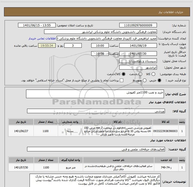 شرح کلی نیاز: خرید و نصب 1100متر کفپوش