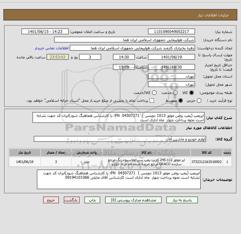 نام دستگاه خریدار:شرکت هواپیمایی جمهوری اسلامی ایران هما