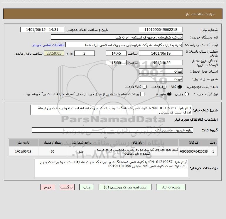 استعلام فیلتر هوا 01319257 PN: با کارشناس هماهنگ شود ایران کد جهت تشابه است نحوه پرداخت چهار ماه اداری است کارشناس, استعلام فیلتر هوا 01319257 PN: با کارشناس هماهنگ شود ایران کد جهت تشابه است نحوه پرداخت چهار ماه اداری است کارشناس