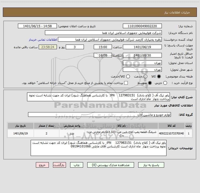 نام دستگاه خریدار:شرکت هواپیمایی جمهوری اسلامی ایران هما