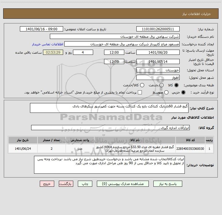 نام دستگاه خریدار:شرکت سهامی برق منطقه ای خوزستان