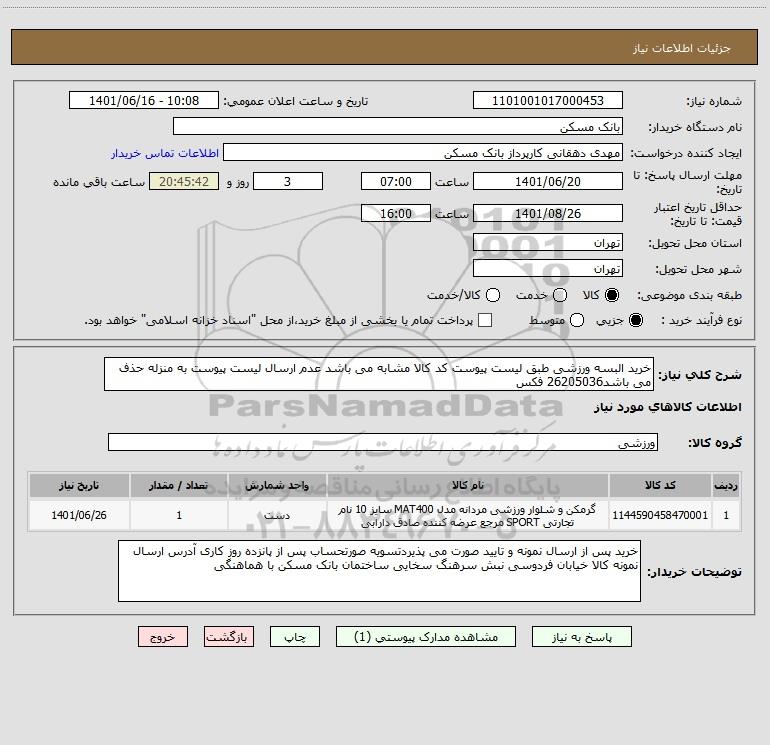 استعلام خرید البسه ورزشی طبق لیست پیوست کد کالا مشابه می باشد عدم ارسال لیست پیوست به منزله حذف می باشد26205036 فکس, استعلام خرید البسه ورزشی طبق لیست پیوست کد کالا مشابه می باشد عدم ارسال لیست پیوست به منزله حذف می باشد26205036 فکس