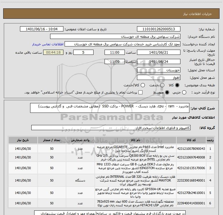 نام دستگاه خریدار:شرکت سهامی برق منطقه ای خوزستان