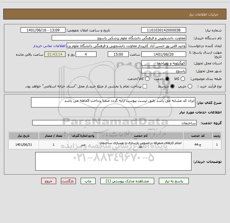 نام دستگاه خریدار:معاونت دانشجویی و فرهنگی دانشگاه علوم پزشکی یاسوج
