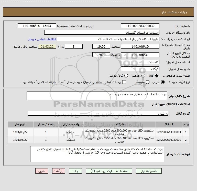 شرح کلی نیاز: دو دستگاه اسکوربرد طبق مشخصات پیوست