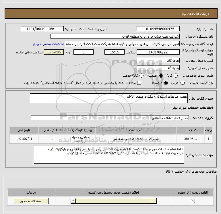 نام دستگاه خریدار:شرکت نفت فلات قاره ایران منطقه لاوان