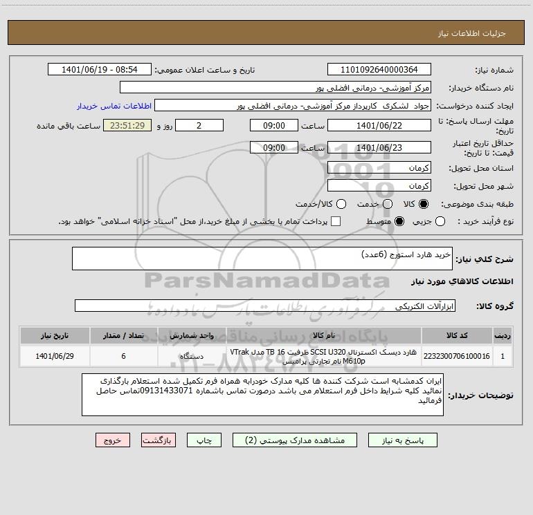 شرح کلی نیاز: خرید هارد استورج (6عدد)