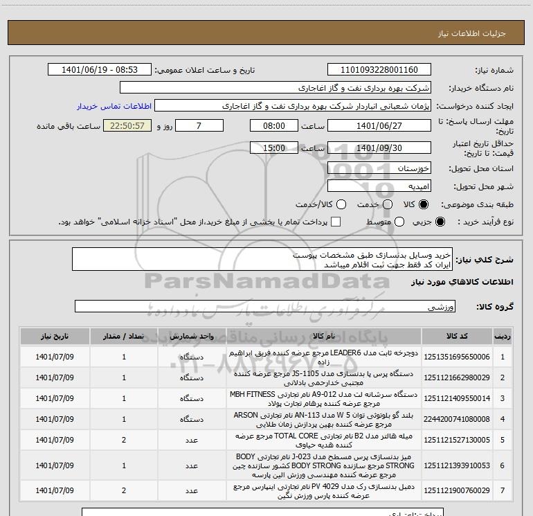 شرح کلی نیاز: خرید وسایل بدنسازی طبق مشخصات پیوست
