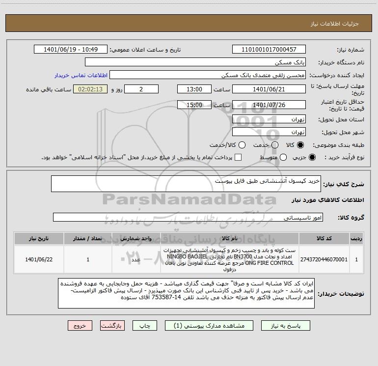 شرح کلی نیاز: خرید کپسول آتشنشانی طبق فایل پیوست