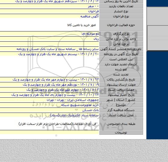 این مناقصه در تاریخ 1401/06/20 شروع و مهلت آن تا تاریخ 1401/07/04 میباشد.