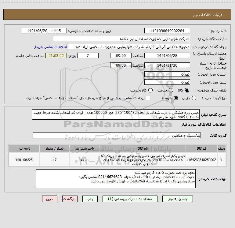 نام دستگاه خریدار:شرکت هواپیمایی جمهوری اسلامی ایران هما