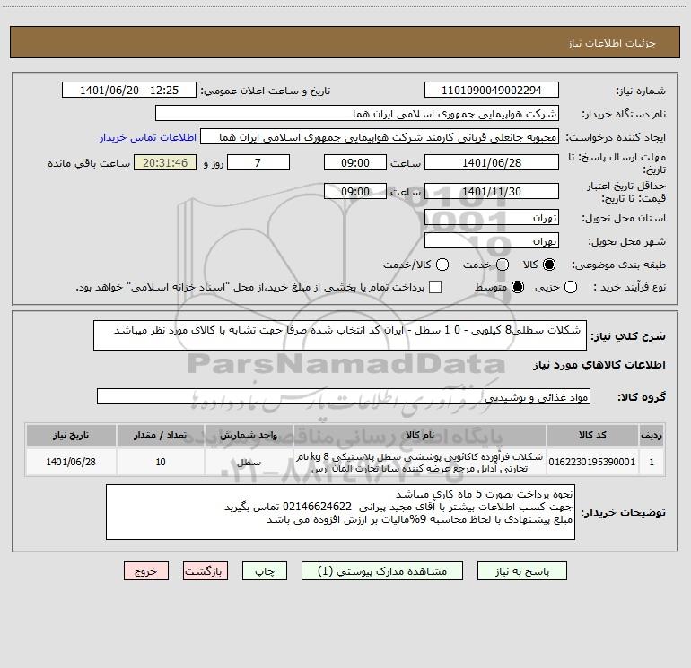 نام دستگاه خریدار:شرکت هواپیمایی جمهوری اسلامی ایران هما