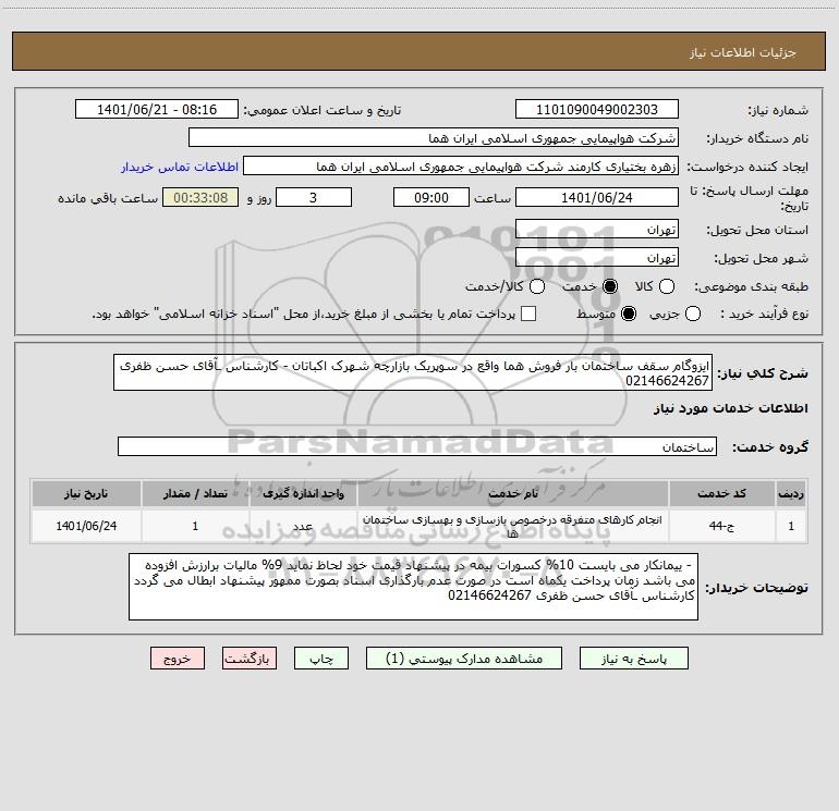 نام دستگاه خریدار:شرکت هواپیمایی جمهوری اسلامی ایران هما