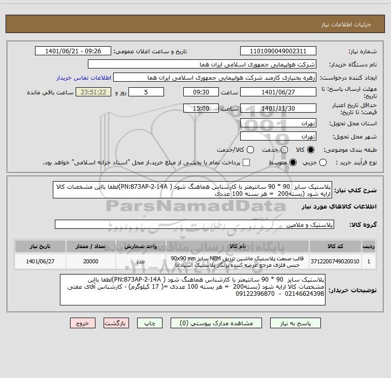 نام دستگاه خریدار:شرکت هواپیمایی جمهوری اسلامی ایران هما