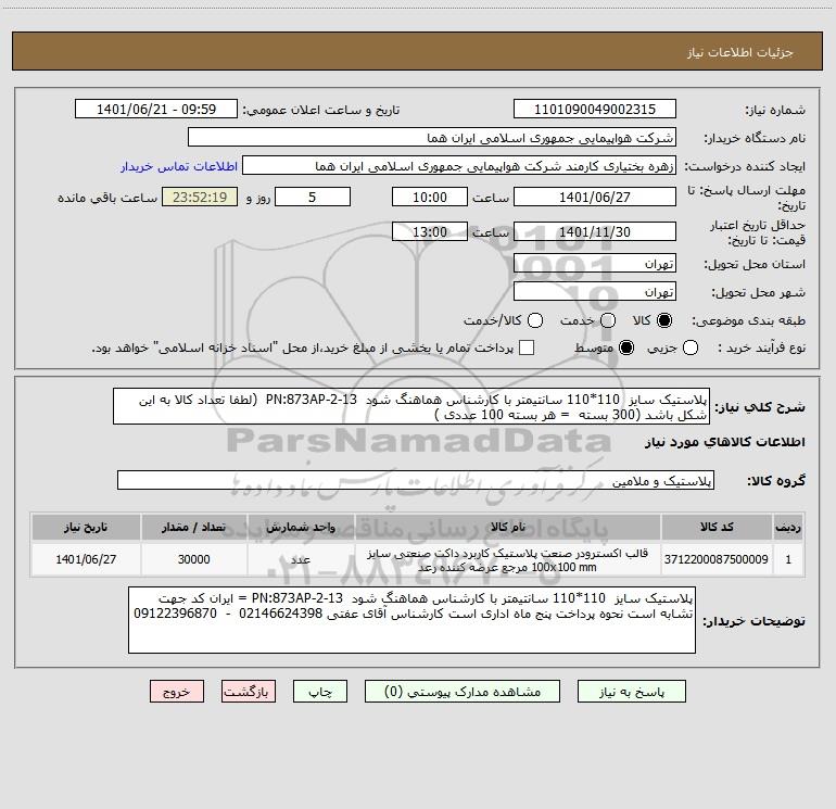 نام دستگاه خریدار:شرکت هواپیمایی جمهوری اسلامی ایران هما