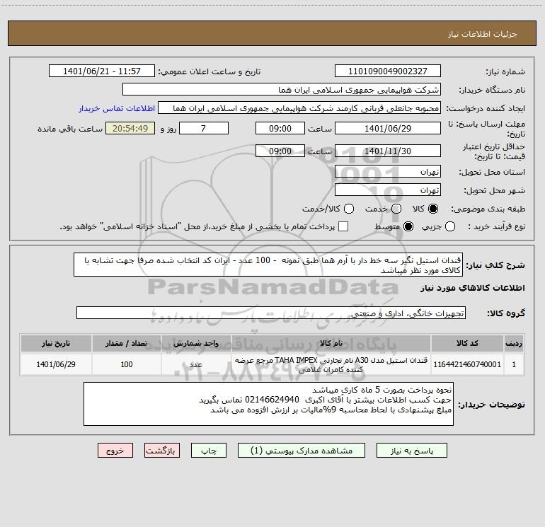 نام دستگاه خریدار:شرکت هواپیمایی جمهوری اسلامی ایران هما