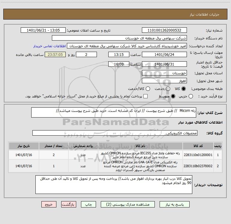 نام دستگاه خریدار:شرکت سهامی برق منطقه ای خوزستان