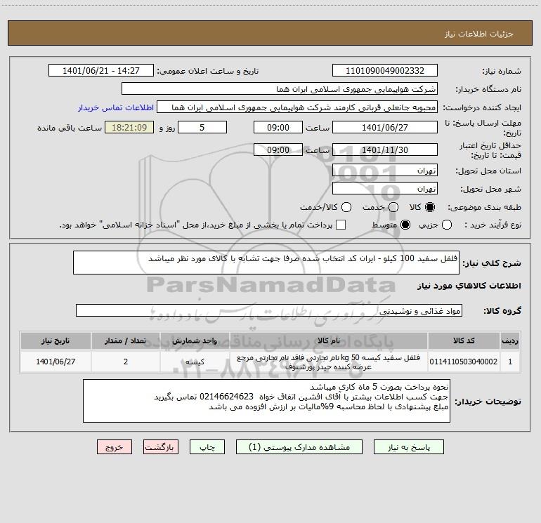 نام دستگاه خریدار:شرکت هواپیمایی جمهوری اسلامی ایران هما