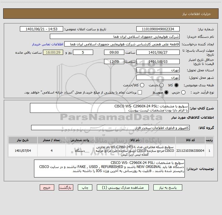 نام دستگاه خریدار:شرکت هواپیمایی جمهوری اسلامی ایران هما