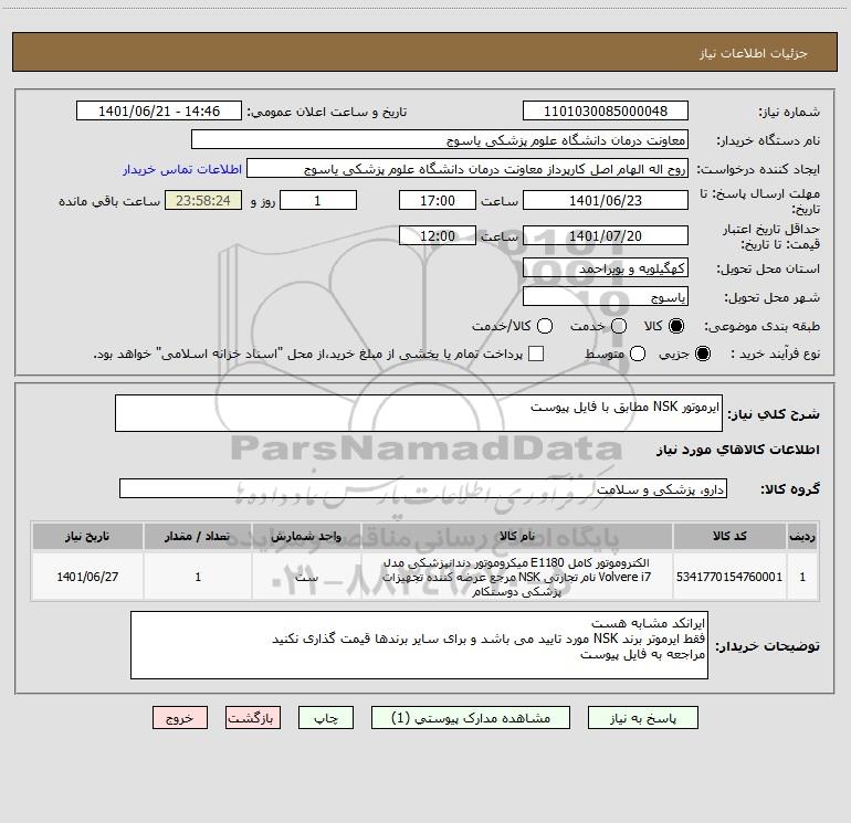 نام دستگاه خریدار:معاونت درمان دانشگاه علوم پزشکی یاسوج