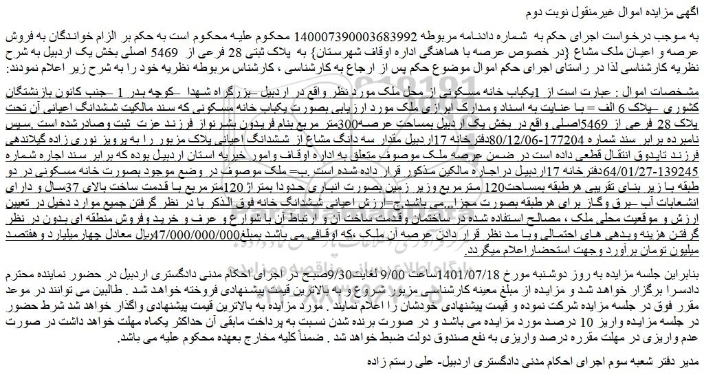 اگهی مزایده اموال غیرمنقول نوبت دوم