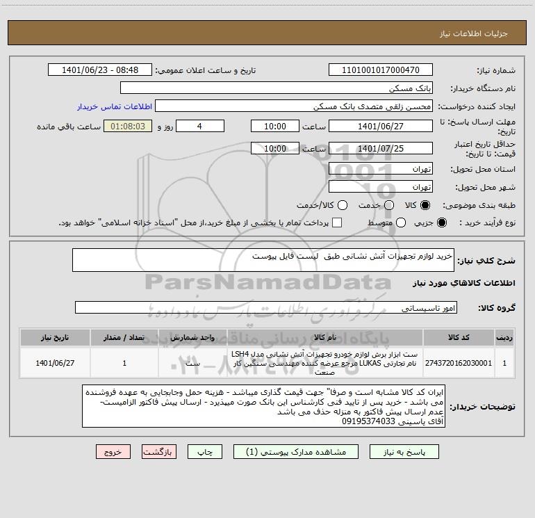 شرح کلی نیاز: خرید لوازم تجهیزات آتش نشانی طبق لیست فایل پیوست
