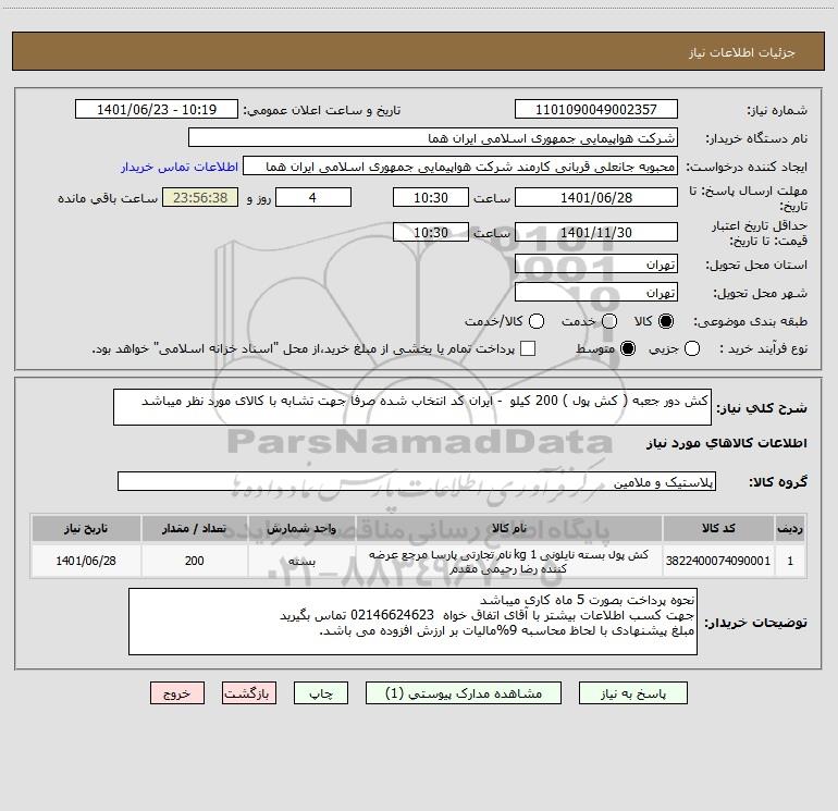 نام دستگاه خریدار:شرکت هواپیمایی جمهوری اسلامی ایران هما
