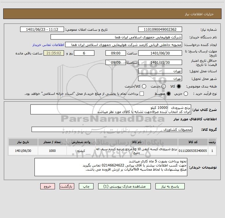 نام دستگاه خریدار:شرکت هواپیمایی جمهوری اسلامی ایران هما