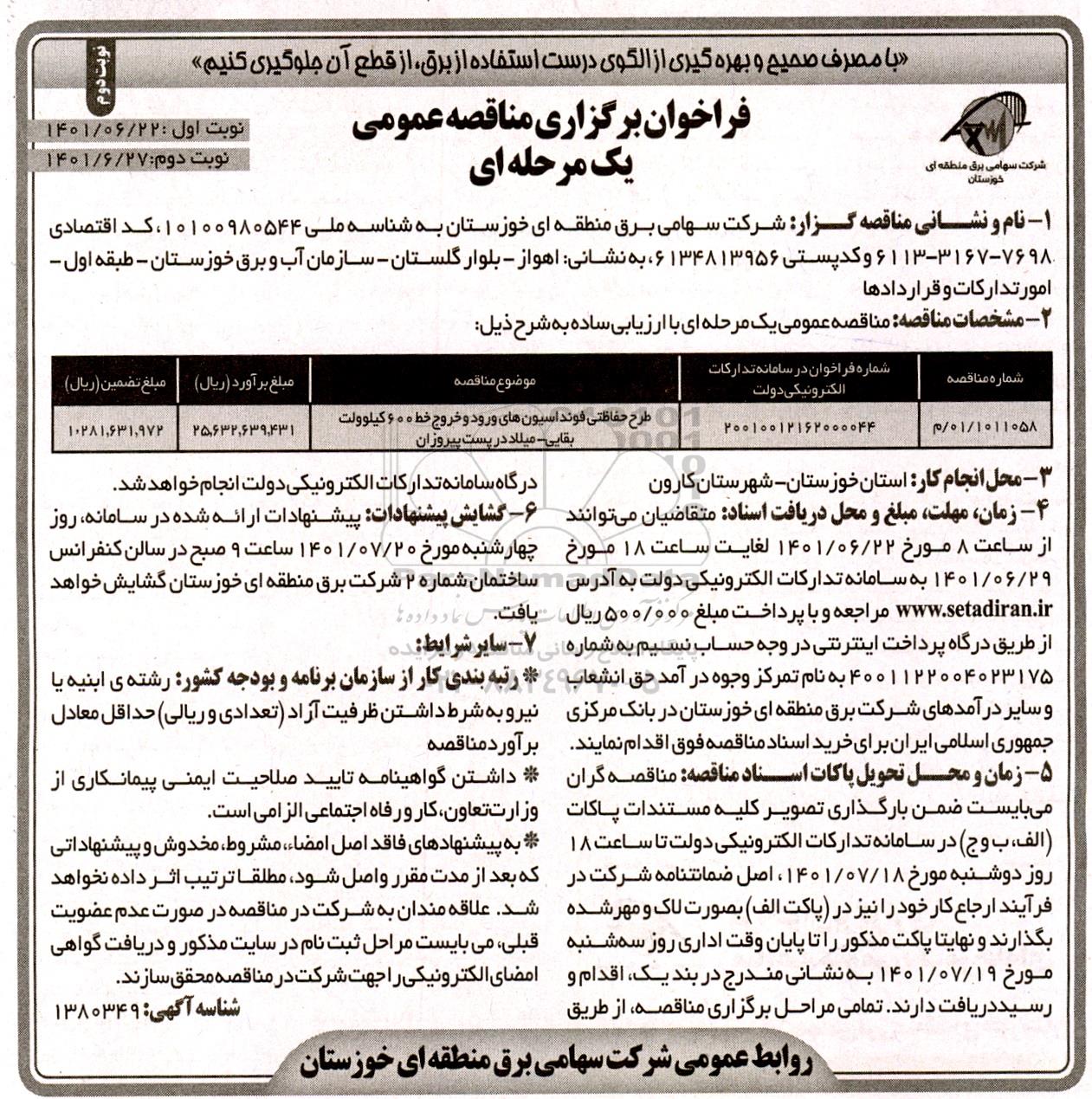 مناقصه طرح حفاظتی فونداسیون های ورود و خروج خط 600 کیلوولت - نوبت دوم از کلیه افراد متخصص و شرکتها واجد شرایط دعوت به عمل میآید در مناقصه با کد خبرگزاری پارس نماد: 4943270 شرکت نمایند.