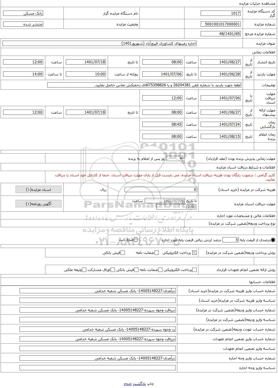 مزایده ، اجاره زمینهای کشاورزی فیروزآباد (شهریور1401), مزایده ، اجاره زمینهای کشاورزی فیروزآباد (شهریور1401)