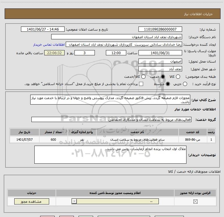 شرح کلی نیاز: مجوزات لازم ضمیمه گردد. پیش فاکتور ضمیمه گردد. مدارک پیوستی واضح و خوانا و در ارتباط با خدمت مورد نیاز باشد.
