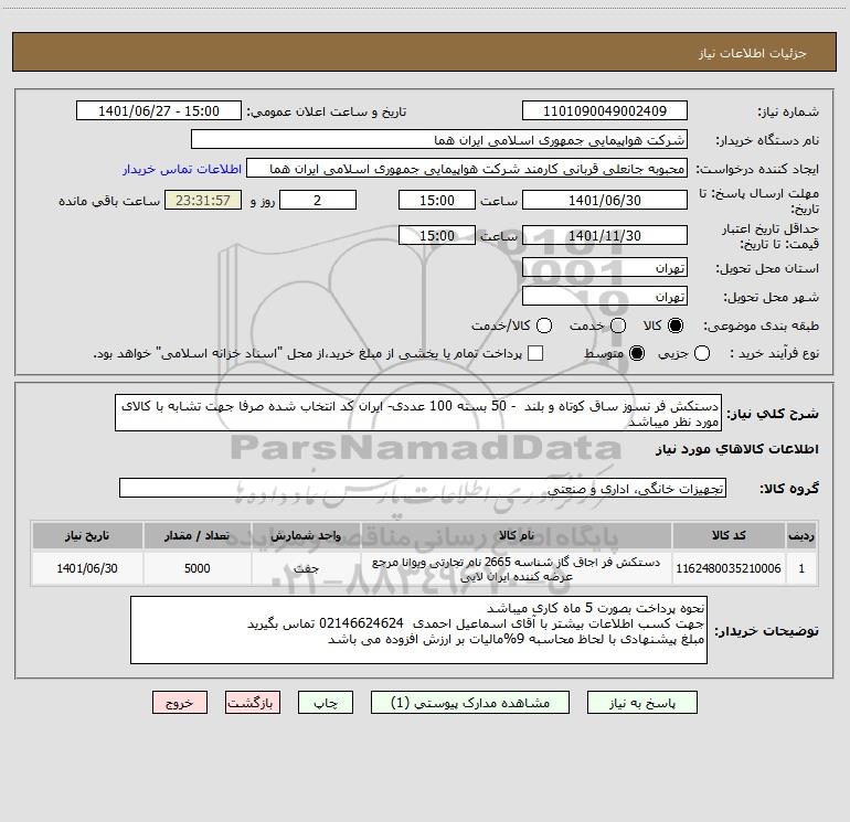 نام دستگاه خریدار:شرکت هواپیمایی جمهوری اسلامی ایران هما