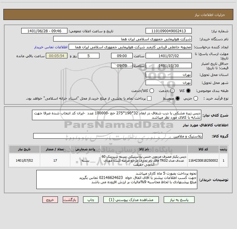 نام دستگاه خریدار:شرکت هواپیمایی جمهوری اسلامی ایران هما