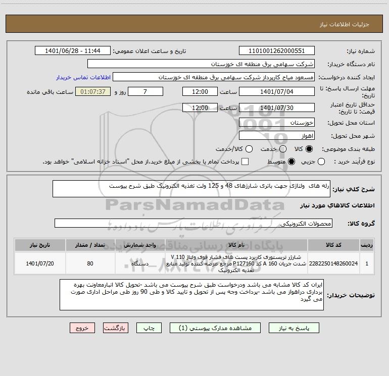 شرح کلی نیاز: رله های ولتاژی جهت باتری شارژهای 48 و 125 ولت تغذیه الکترونیک طبق شرح پیوست