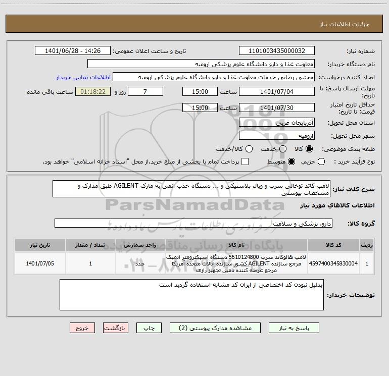نام دستگاه خریدار:معاونت غذا و دارو دانشگاه علوم پزشکی ارومیه