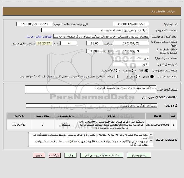 نام دستگاه خریدار:شرکت سهامی برق منطقه ای خوزستان