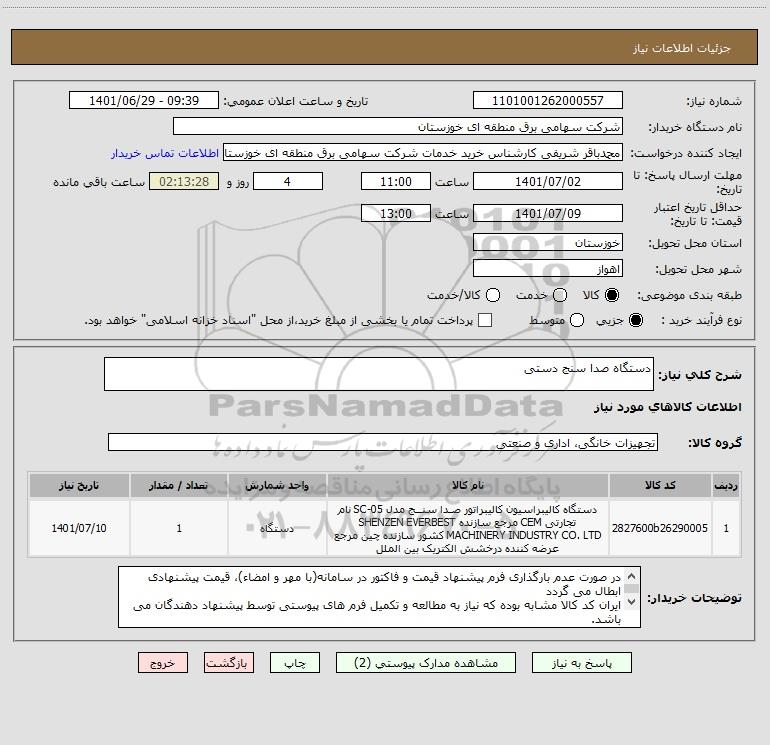 نام دستگاه خریدار:شرکت سهامی برق منطقه ای خوزستان
