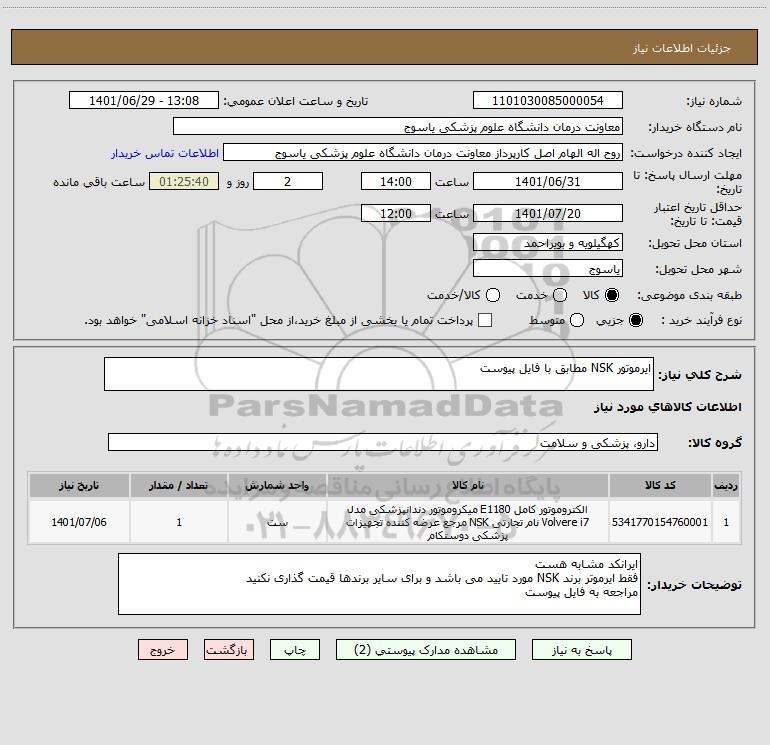 نام دستگاه خریدار:معاونت درمان دانشگاه علوم پزشکی یاسوج
