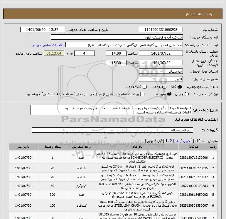 نام دستگاه خریدار:شرکت آب و فاضلاب اهواز