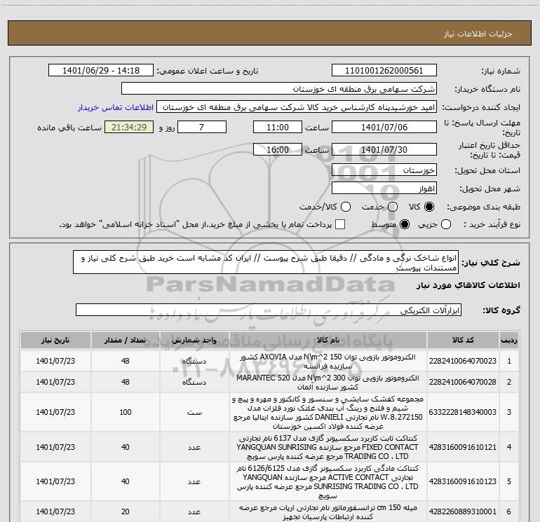 شرح کلی نیاز: انواع شاخک نرگی و مادگی // دقیقا طبق شرح پیوست // ایران کد مشابه است خرید طبق شرح کلی نیاز و مستندات پیوست