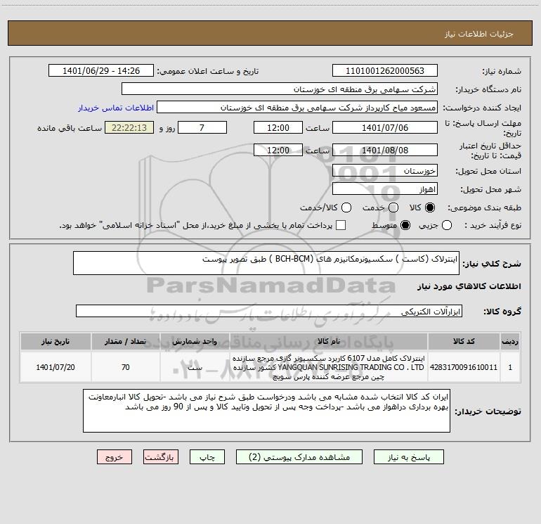 نام دستگاه خریدار:شرکت سهامی برق منطقه ای خوزستان