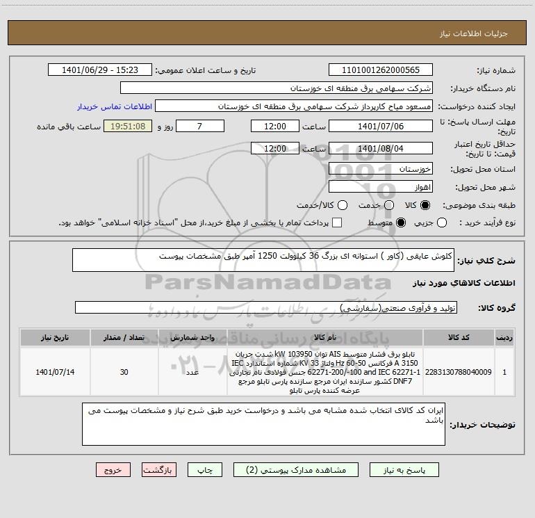 نام دستگاه خریدار:شرکت سهامی برق منطقه ای خوزستان