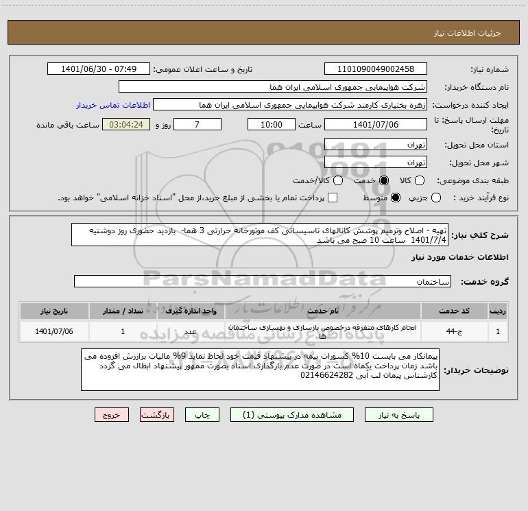 نام دستگاه خریدار:شرکت هواپیمایی جمهوری اسلامی ایران هما