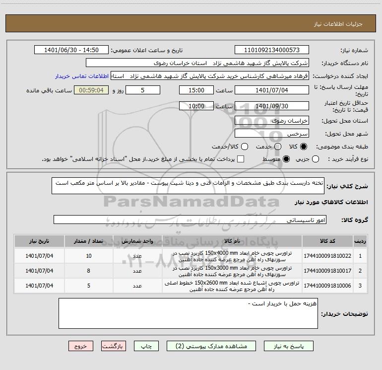 نام دستگاه خریدار:شرکت پالایش گاز شهید هاشمی نژاد استان خراسان رضوی