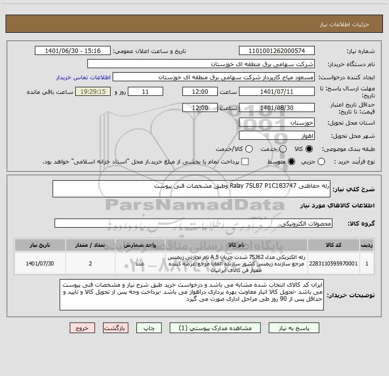 نام دستگاه خریدار:شرکت سهامی برق منطقه ای خوزستان