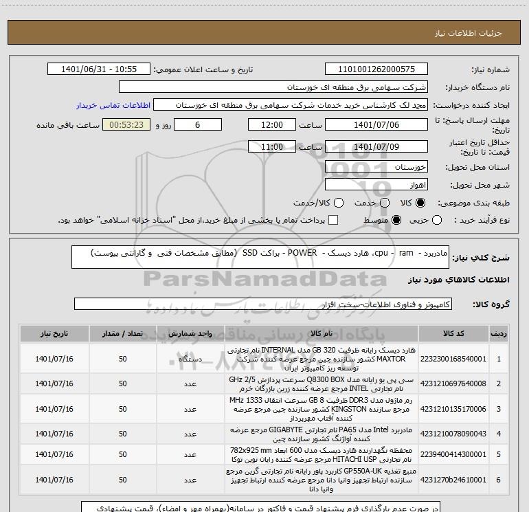 نام دستگاه خریدار:شرکت سهامی برق منطقه ای خوزستان