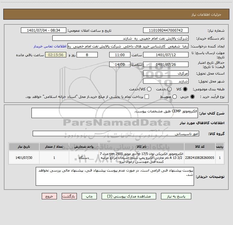استعلام الکتروموتور CEMP طبق مشخصات پیوست., استعلام الکتروموتور CEMP طبق مشخصات پیوست.