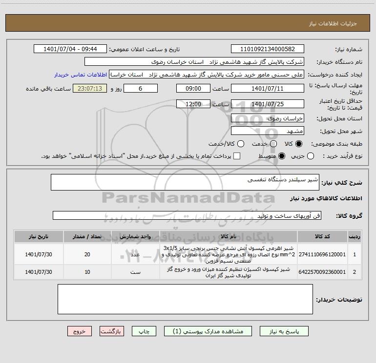 نام دستگاه خریدار:شرکت پالایش گاز شهید هاشمی نژاد استان خراسان رضوی