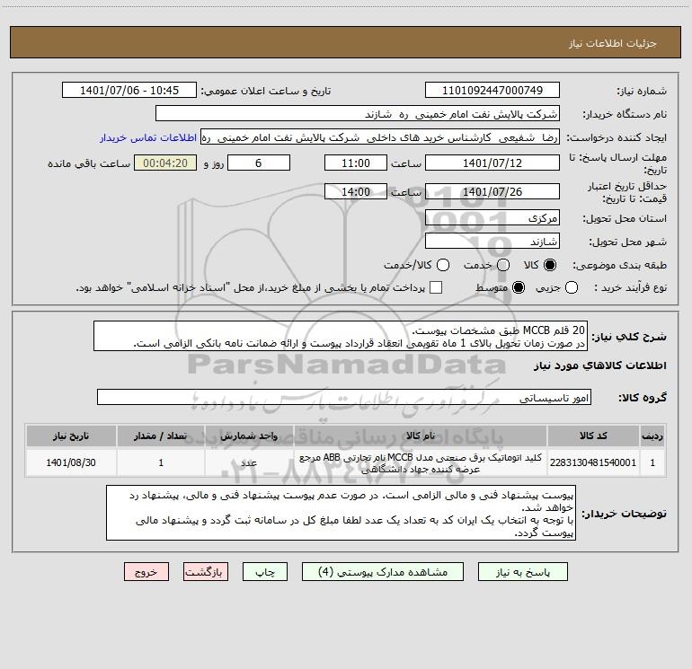 نام دستگاه خریدار:شرکت پالایش نفت امام خمینی ره شازند